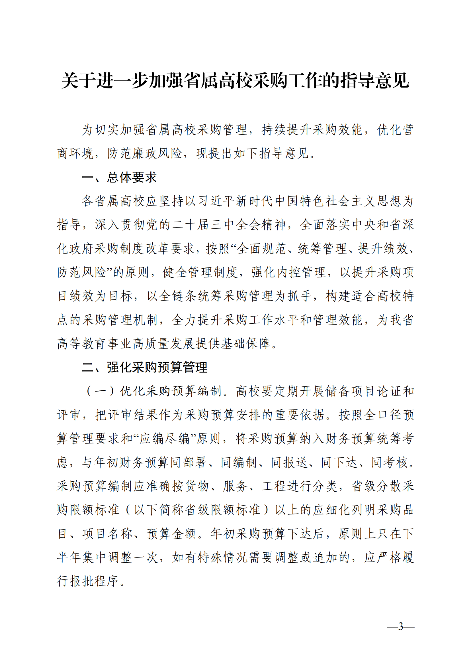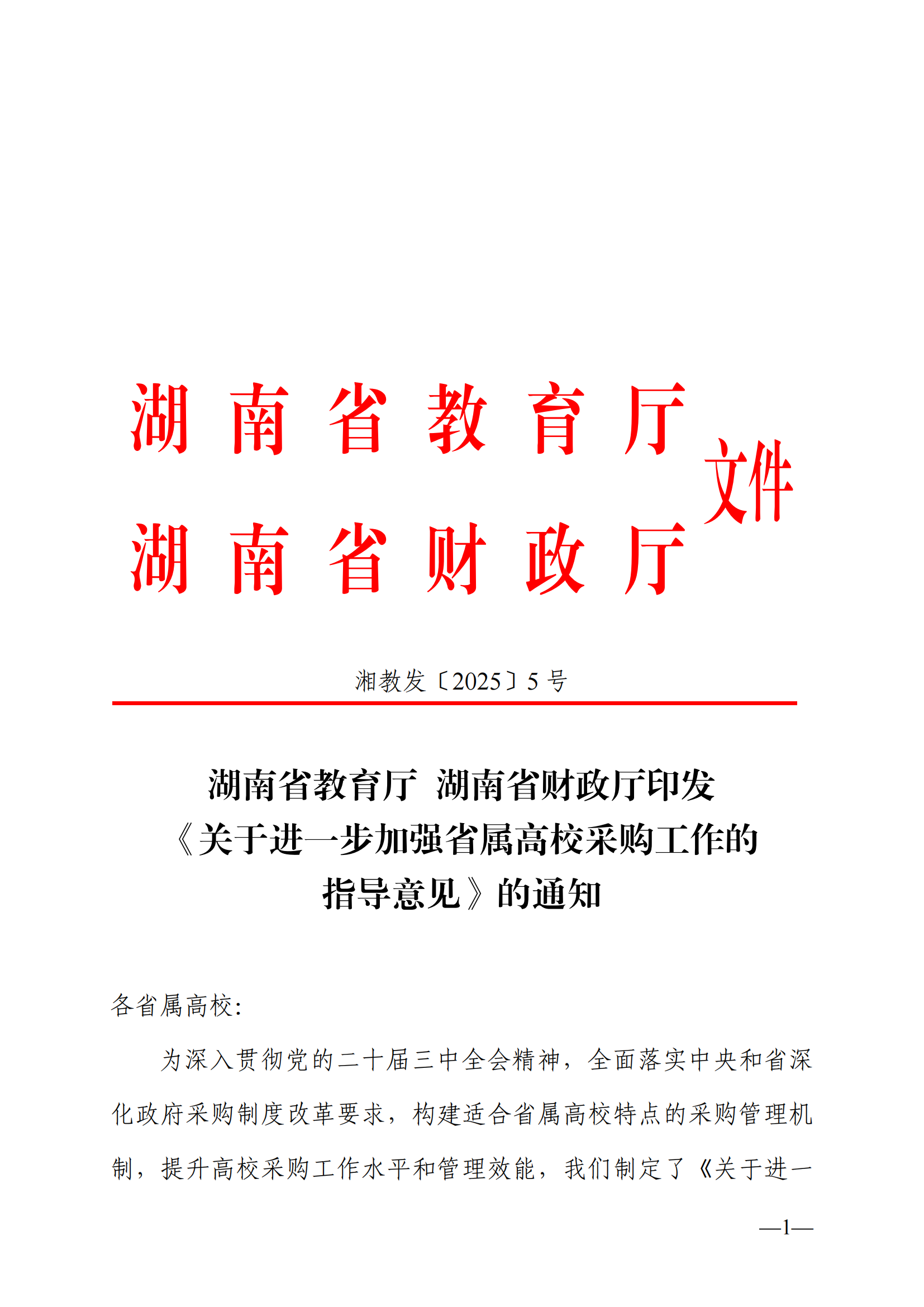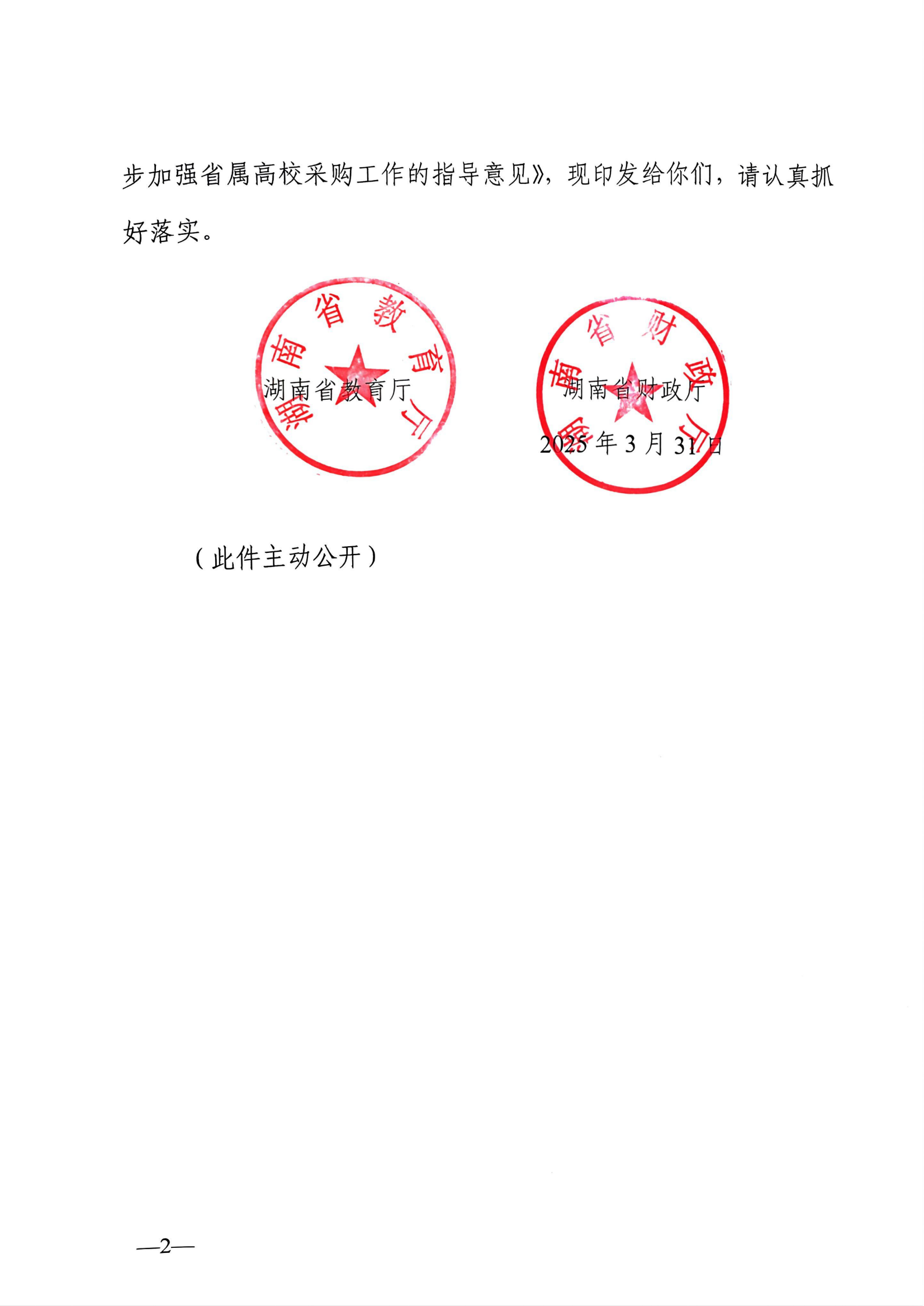 湖南省教育厅 湖南省财政厅关于印发《关于进一步加强省属高校采购工作的指导意见》的通知 (湘教发〔2025〕5号).docx